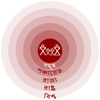 তাই আমরা সমাজ ও শাসন ব্যবস্থায় প্রয়োজনীয় পরিবর্তনগুলির পক্ষে কাজ করি; যাতে ক্ষমতা, দায়িত্ব ও কার্যক্রম জন-সমূহ বা কমিউনিটির নিয়ন্ত্রণে থাকে। আর প্ৰয়োজন এবং অবস্থার প্রেক্ষিতে তা ধাপে ধাপে রাজ্য থেকে কেন্দ্র হয়ে বৈশ্বিক স্তরে পৌঁছোয়।